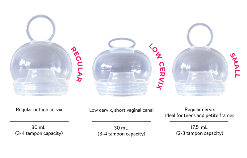 Our menstrual cups come in three sizes - Small, Regular, and Low Cervix - to account for varying cervix heights.
